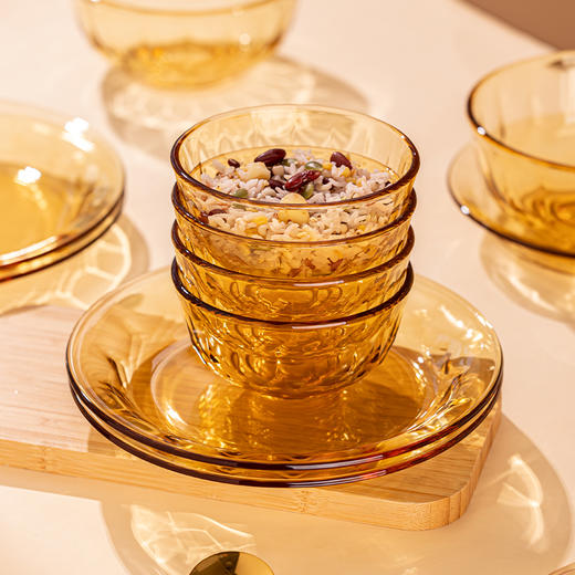 热卖!高颜值餐具!高硼硅钻石琥珀/海棠碗盘套装 加厚玻璃 可进烤箱微波炉