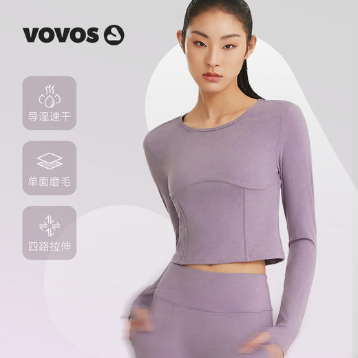 VOVOS一体杯带胸垫秋冬新款外穿长袖瑜伽服运动服修身高级感显瘦健身服T恤VCX8080