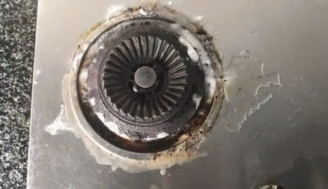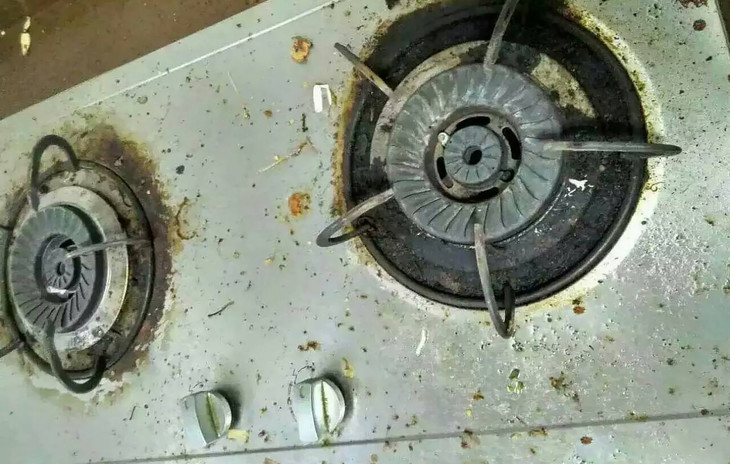 最后测一下最难的灶台,看这个使用了10年的燃气灶,呃。。。。好脏!!!