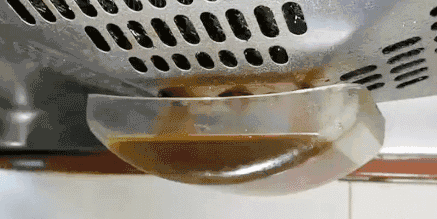 擦完用水冲一冲,之前的油腻污垢都不见。