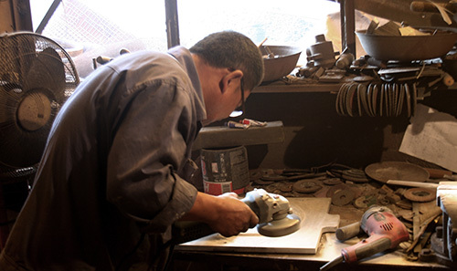 梁老说,好料才做的出好锅器。他们的锅只用锻造性好的国标铸铁(26号灰口铁)。后面的工序才能一步一步开展。