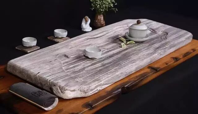木化石是几百万年或更早以前(最少也要几万年)的树木被迅速埋葬地下后,木质部分被地下水中的SiO2(二氧化硅)交换而成的树木化石。它保留了树木的木质结构和纹理。颜色为土黄、淡黄、黄褐、红褐、灰白、灰黑等,抛光面可具玻璃光泽,不透明或微透明,因部分木化石的质地呈现玉石质感,又称为树化玉或硅化木。因木化石较为稀少,且成玉石质感,制成的茶盘精美高端,近年来十分受宠。