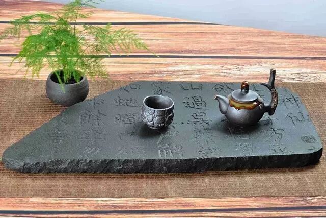 乌金石制茶盘遇冷遇热不变形,不开裂、不褪色,在北方十分适用。