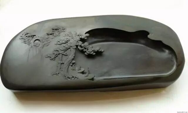 歙砚产于安徽歙县,唐开元年间开始制作。它有天然生成的纹理,有:金星、眉子、细罗纹、水浪纹等。“金星”融结在砚石之中,形如谷粒多如秋夜星星,闪闪发光;“眉子”似的眉毛,粗、细、疏、密,各具神采;“水浪纹”如水的波纹,变化无穷。歙砚的雕刻艺术受徽州砖雕和木雕的影响,有独特的艺术风格,造型浑朴,大方匀称。